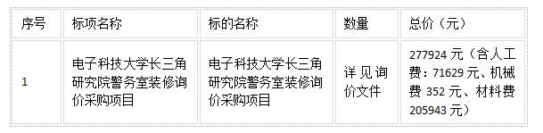 二、項目名稱:電子科技大學長三角研究院警務室裝修詢價采購項目