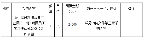 附件:衢州高鐵新城智慧產(chǎn)業(yè)園(一期)項(xiàng)目員工餐廳連體式餐桌椅采購(gòu)項(xiàng)目