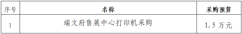 一、采購項目名稱:瑞文府售展中心打印機詢價采購項目