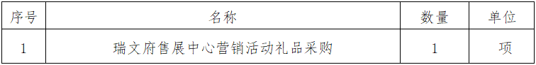 一、采購(gòu)項(xiàng)目名稱:瑞文府售展中心營(yíng)銷活動(dòng)禮品采購(gòu)