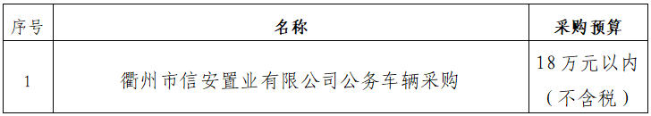 一、采購(gòu)項(xiàng)目名稱:衢州市信安置業(yè)有限公司公務(wù)車輛采購(gòu)項(xiàng)目