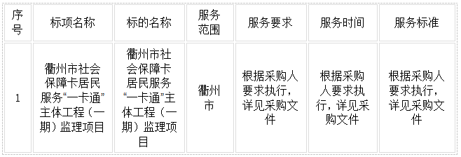 二、項目名稱:衢州市社會保障卡居民服務“一卡通”主體工程(一期)監(jiān)理項目