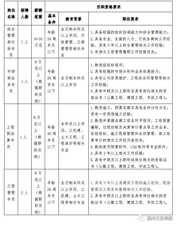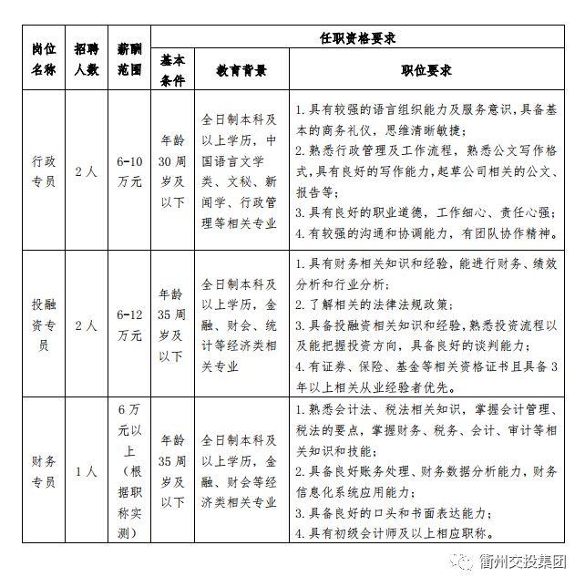 (一)衢州市交通投資集團(tuán)有限公司招聘崗位與人數(shù)見下表: