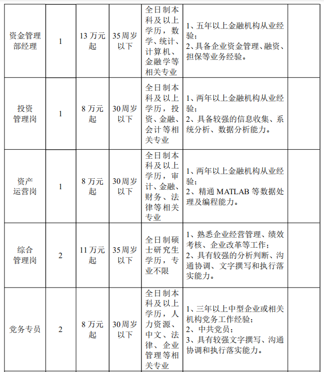 根據(jù)集團(tuán)發(fā)展需要,現(xiàn)面向社會(huì)公開(kāi)招聘24名工作人員,具體工作單位由集團(tuán)根據(jù)工作需要,在集團(tuán)本部和全資子公司之間進(jìn)行統(tǒng)籌安排。具體招聘事項(xiàng)公告如下: