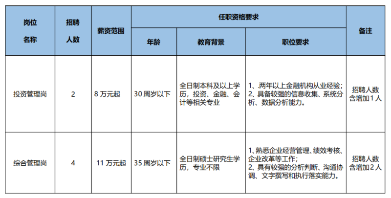 一、增加部分崗位招聘名額(具體內(nèi)容見下表)