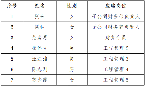 根據《衢州市交通投資集團有限公司招聘公告》要求,現(xiàn)將擬錄用人員名單公示如下: