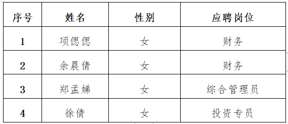 根據《衢州市交通投資集團有限公司招聘工作方案》要求,現將擬錄用人員名單公示如下: