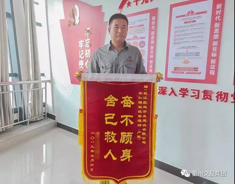 7月10日,市民張女士一行人把一面寫有“奮不顧身舍己救人”字樣的錦旗送到了集團(tuán)下屬子公司——衢州市巨江航運(yùn)建設(shè)開(kāi)發(fā)有限公司下轄安仁鋪航電樞紐管理站,感謝該站職工嚴(yán)俊不顧自身安危,冒雨下河救人的義舉。“他救了人之后沒(méi)留名字就走了,我們打聽(tīng)了很久,才知道是這里的員工,特地送面錦旗表達(dá)感激之情?!睆埮空f(shuō)。