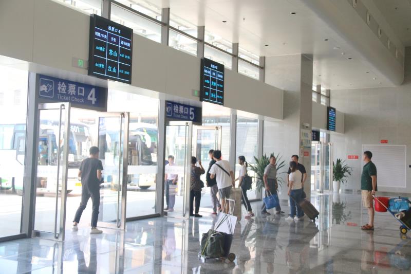 城鄉(xiāng)/城際公交候車大廳位于市綜合客運樞紐地上二層西側,大廳內(nèi)共設置了6個檢票口,近170個座位可供乘客在候車時休息。