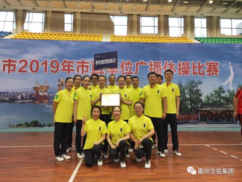 9月29日上午,衢州市2019年市直單位廣播體操比賽在衢州職業(yè)技術(shù)學(xué)院舉行,本次比賽以第九套廣播體操為競賽項(xiàng)目,共有來自全市22個(gè)市直單位同場競技。經(jīng)過精彩角逐,交投集團(tuán)代表隊(duì)?wèi){借出色發(fā)揮,斬獲一等獎。