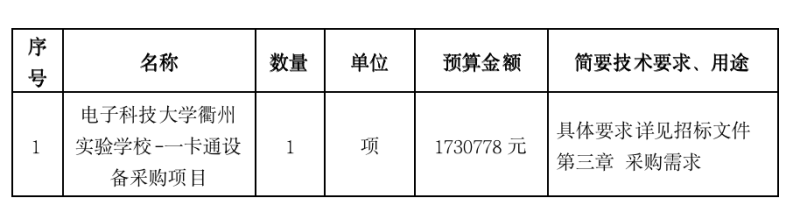 項(xiàng)目名稱:電子科技大學(xué)衢州實(shí)驗(yàn)學(xué)校-一卡通設(shè)備采購(gòu)項(xiàng)目