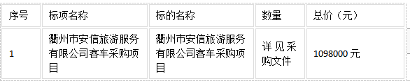 二、項(xiàng)目名稱:衢州市安信旅游服務(wù)有限公司客車采購(gòu)項(xiàng)目