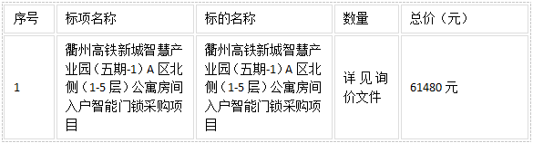 二、項目名稱:衢州高鐵新城智慧產(chǎn)業(yè)園(五期-1)A區(qū)北側(cè)(1-5層)公寓房間入戶智能門鎖采購項目