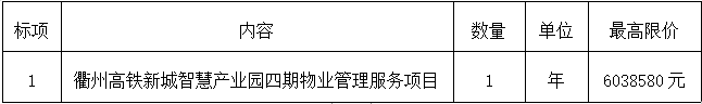 項(xiàng)目名稱:衢州高鐵新城智慧產(chǎn)業(yè)園四期物業(yè)管理服務(wù)項(xiàng)目