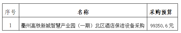 一、采購項目名稱:衢州高鐵新城智慧產(chǎn)業(yè)園(一期)北區(qū)酒店保潔設(shè)備采購。