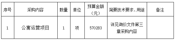 根據(jù)《衢州市國(guó)有企業(yè)采購(gòu)管理辦法(試行)》規(guī)定,衢州市智信工程咨詢有限公司受衢州市瑞城科技產(chǎn)業(yè)服務(wù)有限公司的委托,就衢州高鐵新城智慧產(chǎn)業(yè)園(五期—1)A區(qū)北側(cè)(1-5層)公寓運(yùn)營(yíng)項(xiàng)目采購(gòu)進(jìn)行詢價(jià),本項(xiàng)目為非依法必招項(xiàng)目,現(xiàn)請(qǐng)合格供應(yīng)商參加投標(biāo)。