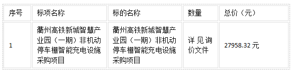 二、項目名稱:衢州高鐵新城智慧產業(yè)園(一期)非機動停車棚智能充電設施采購項目