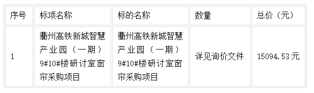 二、項(xiàng)目名稱:衢州高鐵新城智慧產(chǎn)業(yè)園(一期)9#10#樓研討室窗簾采購(gòu)項(xiàng)目