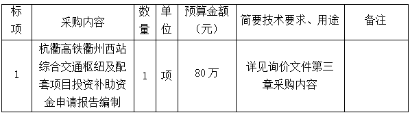 附件1:杭衢高鐵衢州西站綜合交通樞紐及配套項目投資補助資金申請報告編制詢價文件