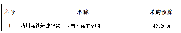 一、采購項目名稱:衢州高鐵新城智慧產(chǎn)業(yè)園登高車采購。