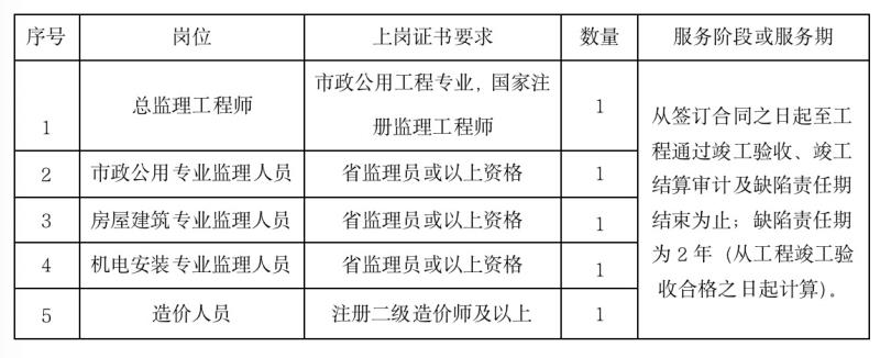 根據本項目特點,招標人提出以下監(jiān)理人員要求,投標人應根據本條要求配置監(jiān)理人員,并計算相應的投標報價。