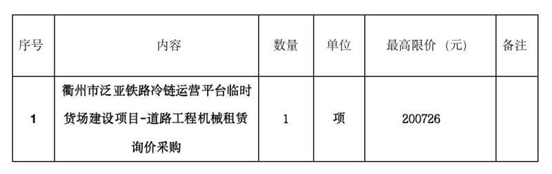 二、項目名稱:衢州市泛亞鐵路冷鏈運營平臺臨時貨場建設項目-道路工程機械租賃詢價采購