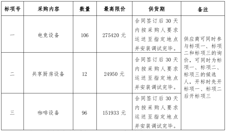 注:本項(xiàng)目的詢價(jià)文件須分標(biāo)項(xiàng)一、二、三分別制作。