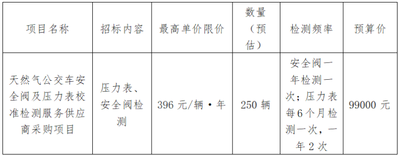 受浙江衢州公交集團(tuán)有限公司委托,現(xiàn)就天然氣公交車安全閥及壓力表校準(zhǔn)檢測服務(wù)供應(yīng)商采購項(xiàng)目進(jìn)行采購。本項(xiàng)目以詢價(jià)方式進(jìn)行采購,歡迎合格的供應(yīng)商參加。