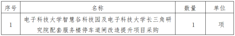 一、采購項(xiàng)目名稱:電子科技大學(xué)智慧谷科技園及電子科技大學(xué)長三角研究院配套服務(wù)樓停車道閘改造提升項(xiàng)目