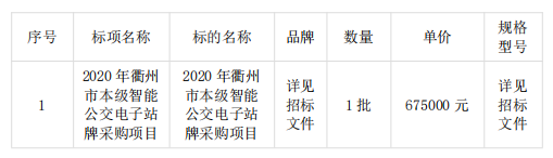 二、項(xiàng)目名稱:2020年衢州市本級(jí)智能公交電子站牌采購(gòu)項(xiàng)目