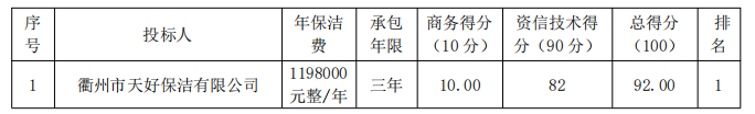 七、中標供應商名稱:衢州市天好保潔有限公司