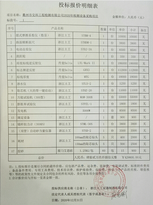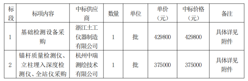 標段1中標供應商:浙江土工儀器制造有限公司,地點:浙江省紹興市上虞區(qū)道墟街道工業(yè)區(qū)。