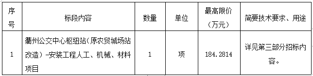 二、項目名稱:衢州公交中心樞紐站(原農貿城場站改造)-安裝工程人工、機械、材料項目