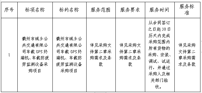 二、項目名稱:衢州市城鄉(xiāng)公共交通有限公司車載GPS終端機、車載防疲勞監(jiān)測設(shè)備采購項目