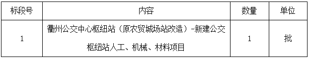 二、項(xiàng)目名稱:衢州公交中心樞紐站(原農(nóng)貿(mào)城場站改造)-新建公交樞紐站人工、機(jī)械、材料項(xiàng)目