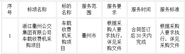 二、項(xiàng)目名稱:浙江衢州公交集團(tuán)有限公司車載收費(fèi)機(jī)采購項(xiàng)目