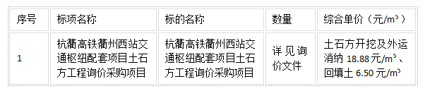 二、項(xiàng)目名稱(chēng):杭衢高鐵衢州西站交通樞紐配套項(xiàng)目土石方工程詢(xún)價(jià)采購(gòu)項(xiàng)目