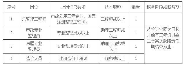 根據(jù)本項(xiàng)目特點(diǎn),招標(biāo)人提出以下監(jiān)理人員要求,投標(biāo)人應(yīng)根據(jù)本條要求配置監(jiān)理人員,并計(jì)算相應(yīng)的投標(biāo)報(bào)價(jià)。