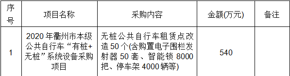 參照《中華人民共和國政府采購法》、《政府采購貨物和服務(wù)招標(biāo)投標(biāo)管理辦法》等規(guī)定,浙江中信工程咨詢有限公司受浙江衢州公交集團(tuán)有限公司委托,就2020年衢州市本級公共自行車“有樁+無樁”系統(tǒng)設(shè)備采購項(xiàng)目進(jìn)行公開招標(biāo)采購,歡迎國內(nèi)合格的供應(yīng)商前來投標(biāo)。