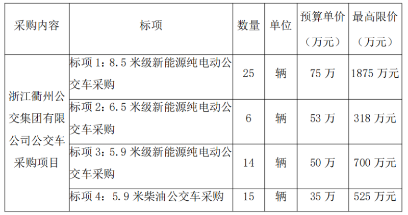 二、項目名稱:浙江衢州公交集團有限公司公交車采購項目