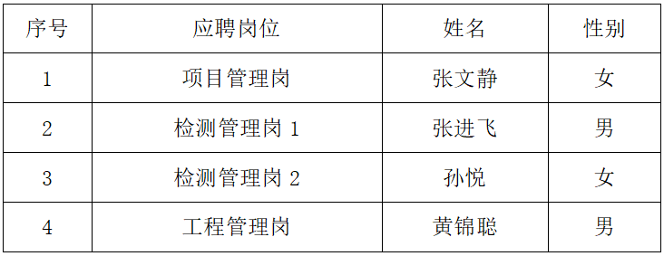 衢通集團2024年4月參加市屬國企上海蘭州人才周公開招聘,經(jīng)資格審查、綜合素質(zhì)評價、面試、體檢、考察,擬錄用張文靜等4位同志為衢通集團工作人員,名單公示如下: