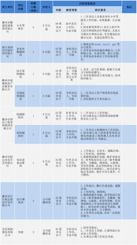衢州市衢通發(fā)展集團(tuán)有限公司因工作需要,現(xiàn)面向社會(huì)公開招聘12名勞務(wù)派遣人員。具體事項(xiàng)公告如下: