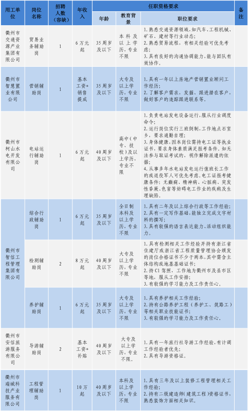 衢州市衢通發(fā)展集團(tuán)有限公司因工作需要,現(xiàn)面向社會(huì)公開(kāi)招聘10名勞務(wù)派遣人員。具體事項(xiàng)公告如下: