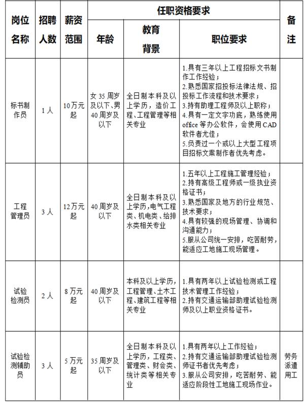 衢州市交通投資集團(tuán)有限公司根據(jù)集團(tuán)發(fā)展需要,擬面向社會(huì)公開招聘工作人員,具體工作單位由集團(tuán)根據(jù)工作需要,在集團(tuán)本部和全資子公司之間進(jìn)行統(tǒng)籌安排。具體招聘事項(xiàng)公告如下: