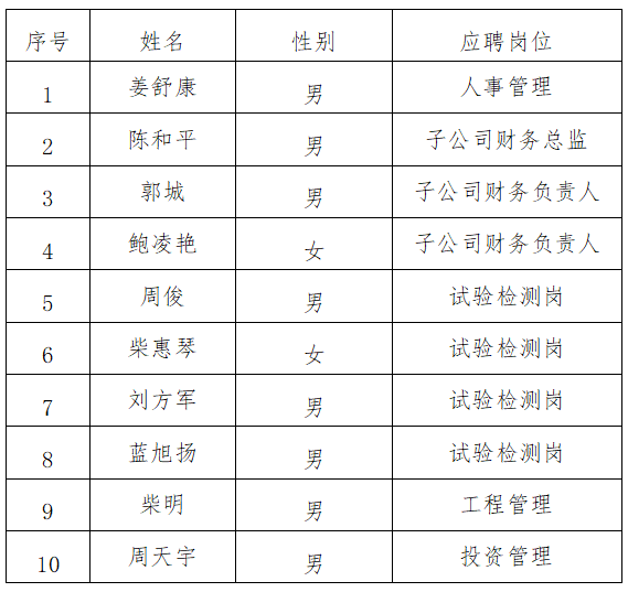 根據(jù)《衢州市交通投資集團(tuán)有限公司招聘公告》要求,現(xiàn)將擬錄用人員名單公示如下: