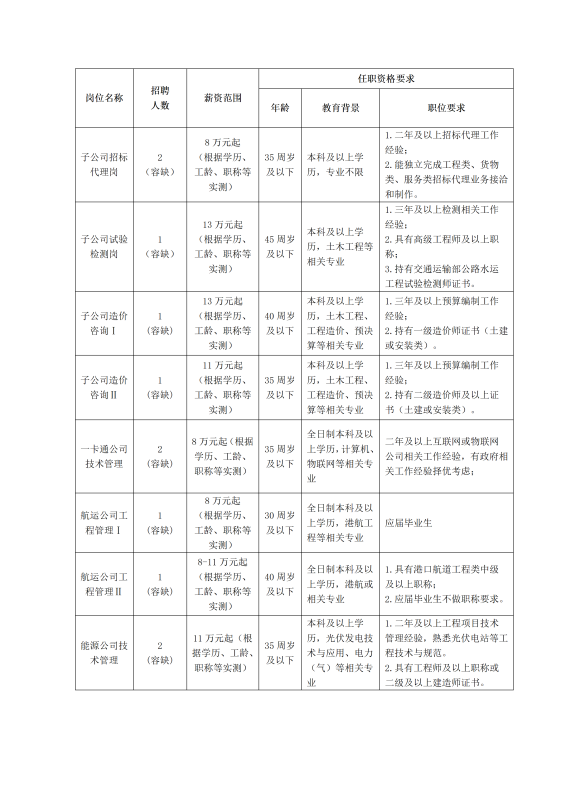 現(xiàn)因集團發(fā)展需要,委托衢州市慧城人才開發(fā)有限公司(以下簡稱慧城人才公司)面向社會公開招聘21名工作人員,具體工作單位由集團根據(jù)工作需要,在集團本部和下屬子公司之間統(tǒng)籌安排。具體招聘事項公告如下: